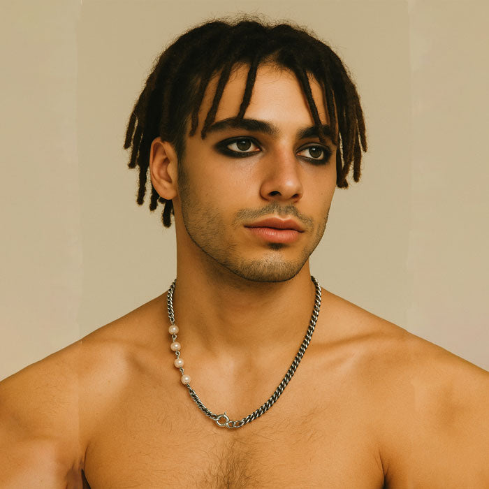 This One-of-a-Kind mixed-style chain necklace is accented with large pink cultured pearls. It is funky but chic. Chunky but elegant. It measures 20 inches in length, but it can be lengthened or shortened upon request. Please email for any additional charges.